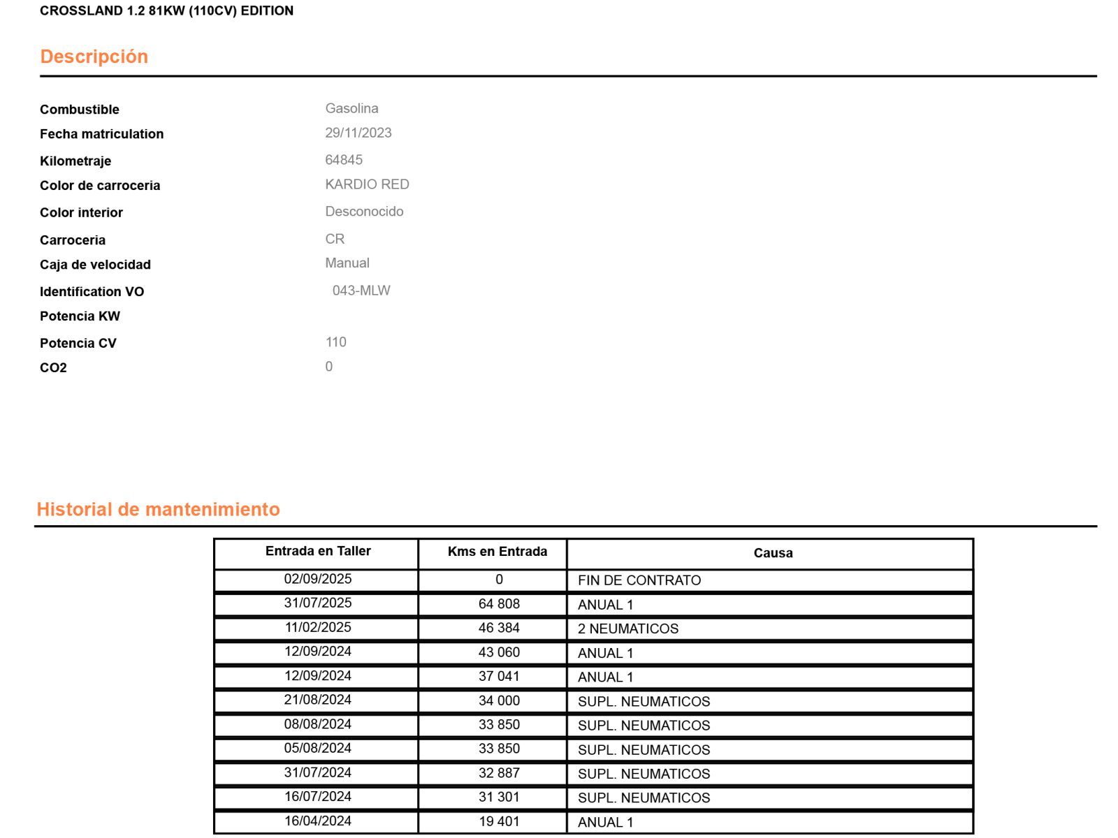 Tipo transmisión: Tracción delantera