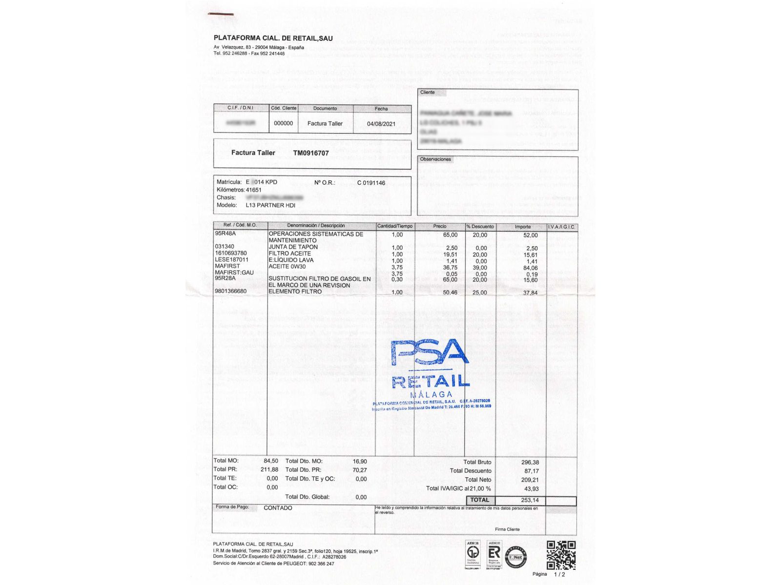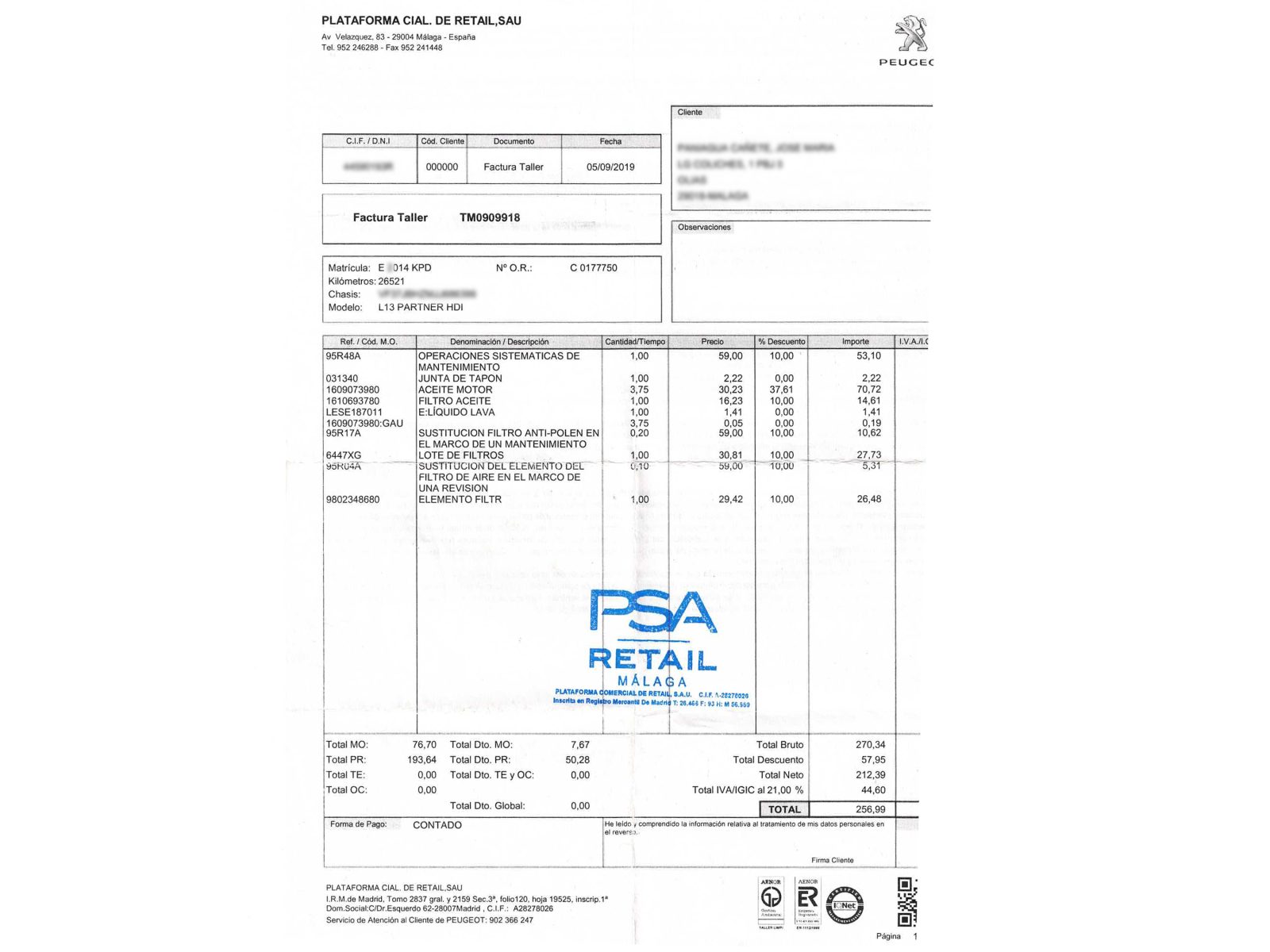 - Gratis revisión 250 puntos