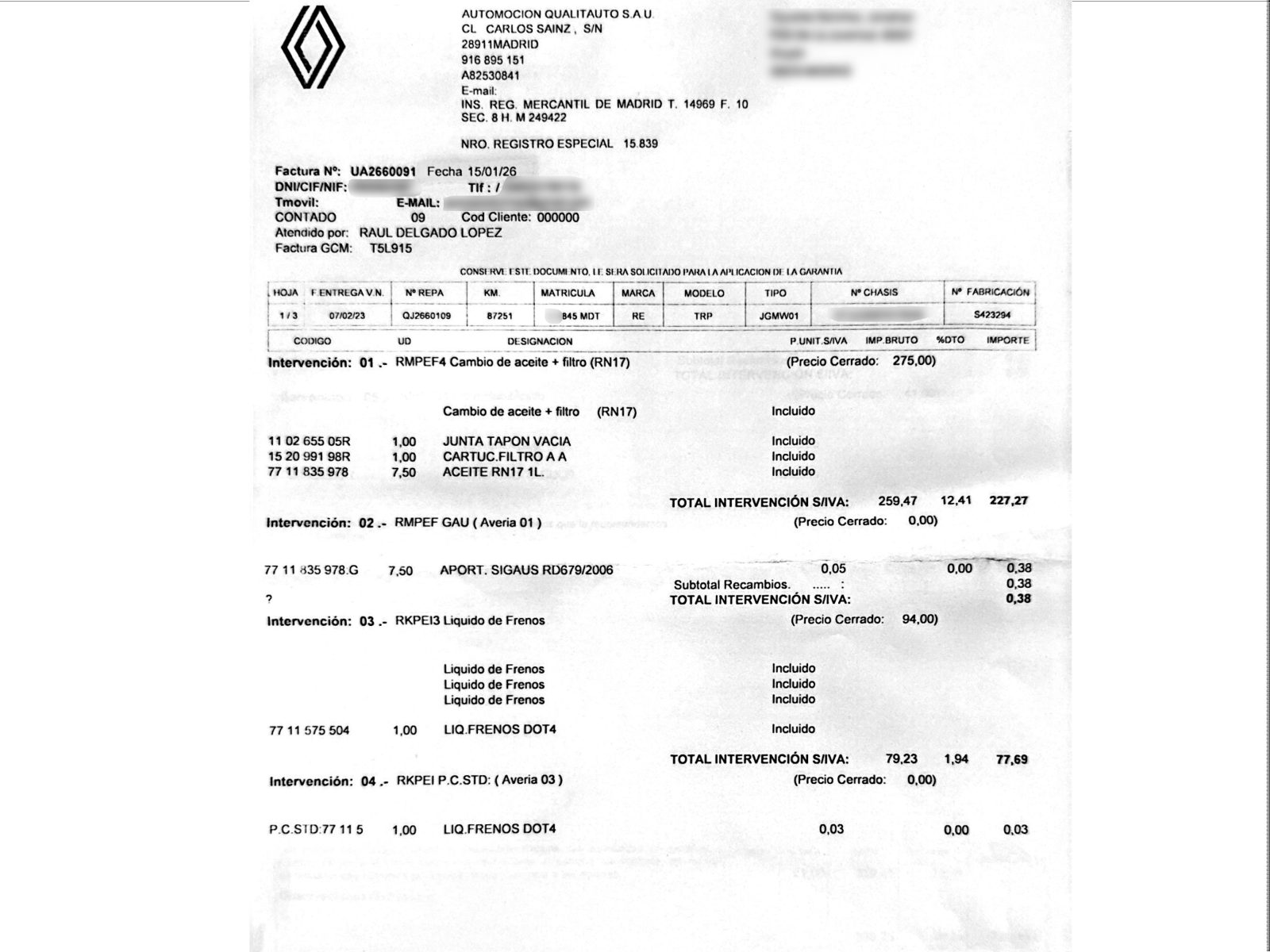 - Envío a domicilio/concesionario