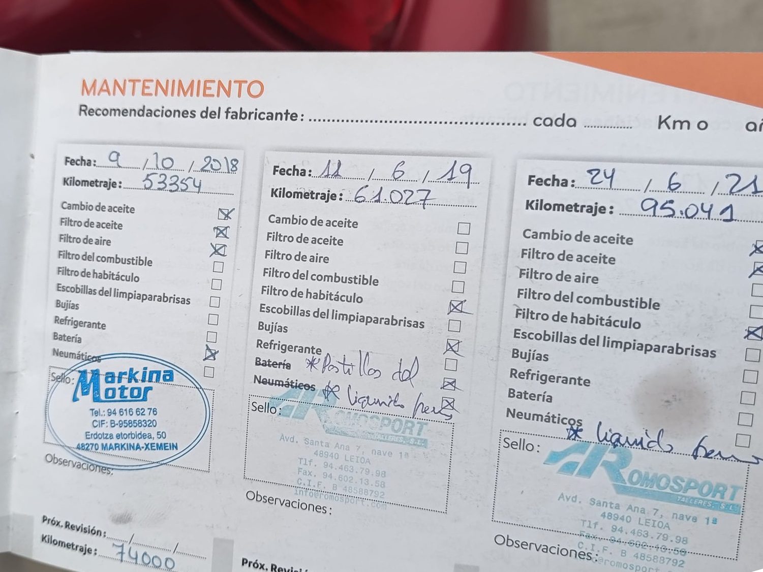 - Envío a domicilio/concesionario