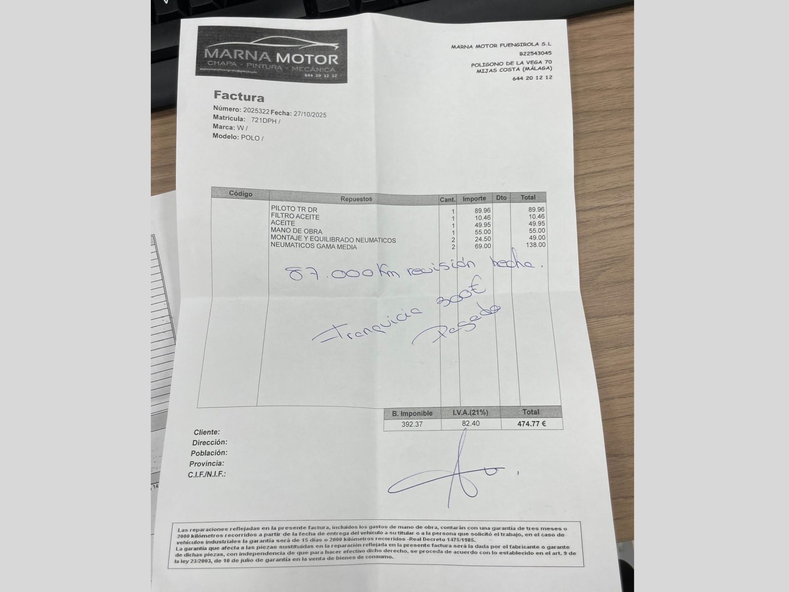 - Gratis revisión 250 puntos
