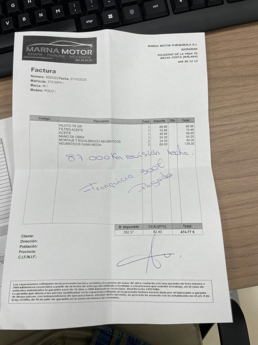 - Envío a domicilio/concesionario
