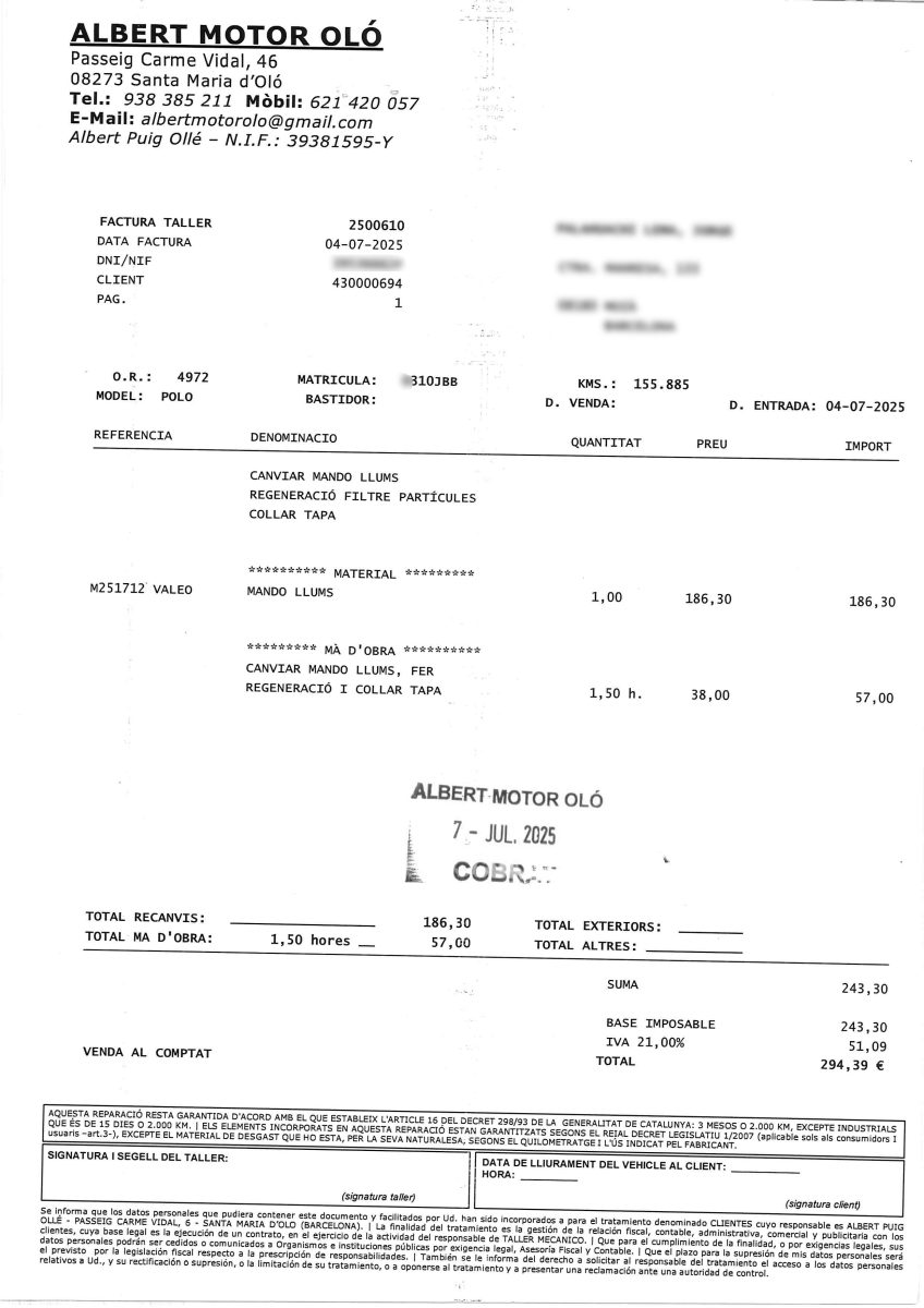- Envío a domicilio/concesionario