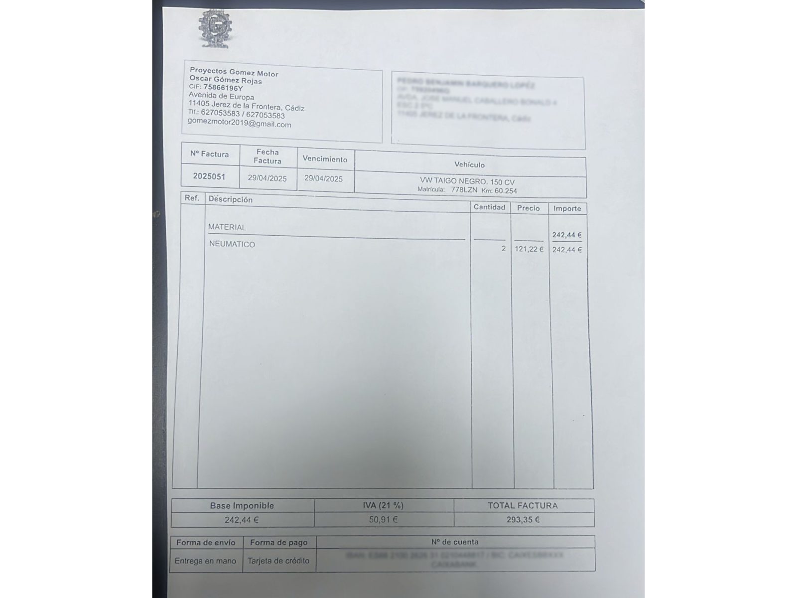 - Envío a domicilio/concesionario
